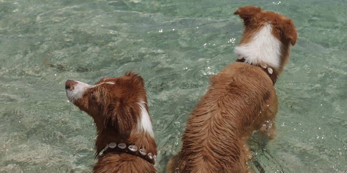 Ohana Pups Cowrie Shell collar on a post at the beachThe Cowrie Shell Dog Collar